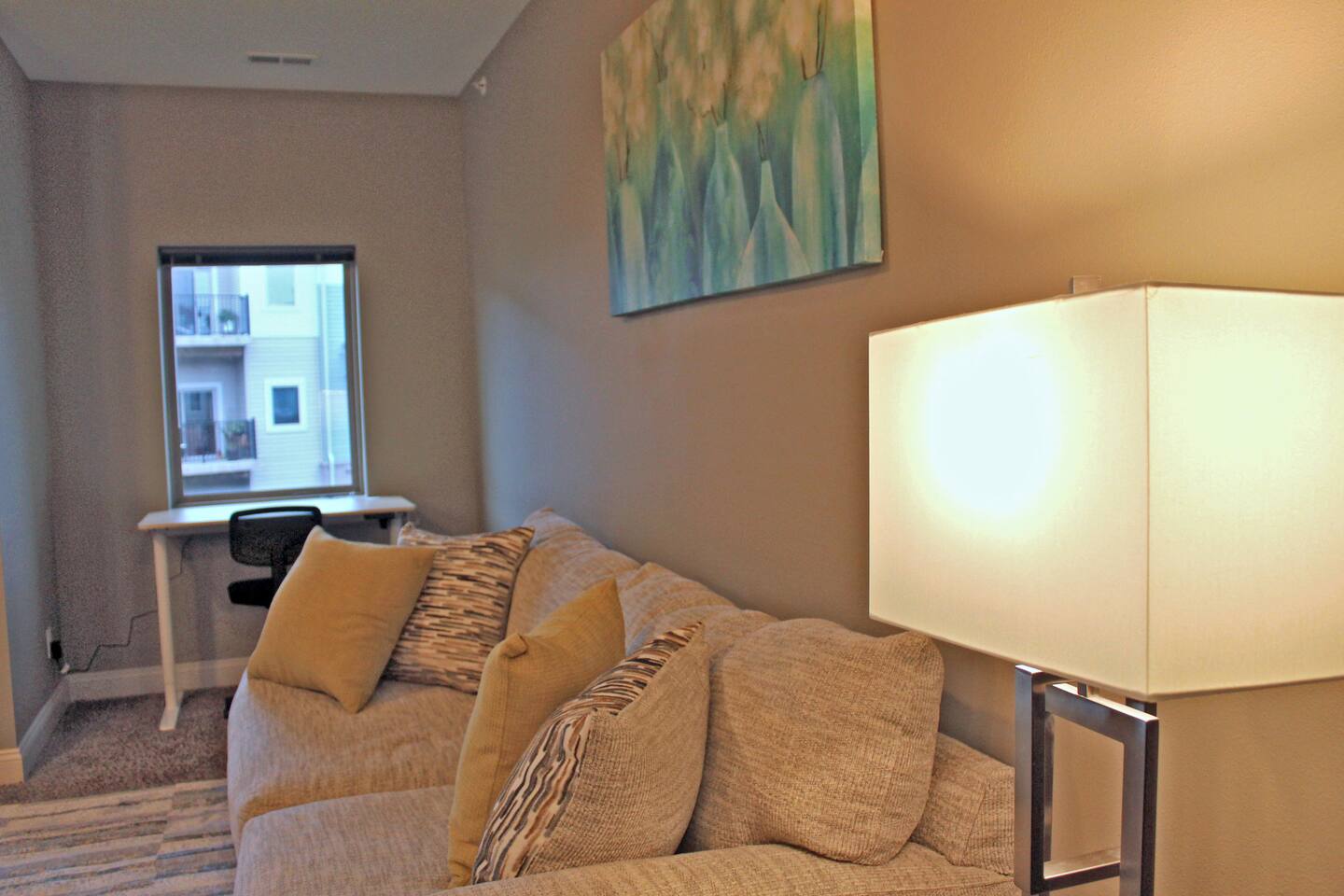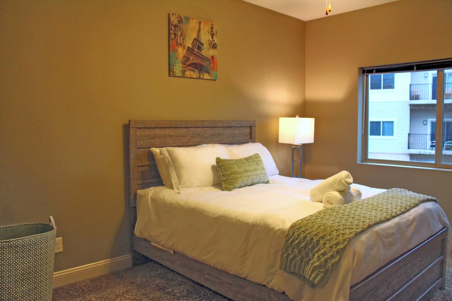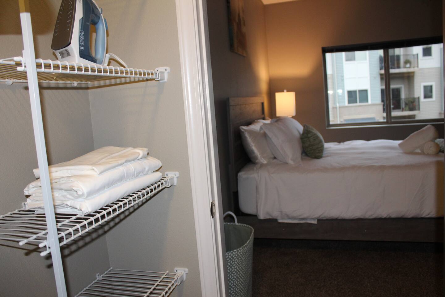 This 1BR apt in west Des Moines was just right for our 5-week stay. It was spotlessly clean & fresh. It was spacious with a very well-equipped kitchen. The bedroom had a dresser & nightstand. The queen bed was reasonably comfortable & there were plenty of linens. The walk-in closet was big enough for two people, lots of hanging space, shelving, and a big laundry hamper. The washer & dryer were stacked, full-sized units - plenty big enough to wash sheets and towels and full laundry loads. The bathroom was squeaky clean, had a tub (nice plus!) and plenty of storage along with a generous supply of towels. There was also a nice deck off the living room with a small table & 2 chairs. The apt came with a nice garage. It was surprisingly quiet most of the time, esp at night. 2 things I would suggest improving: TV service was streaming only, no local access at all. Basic cable would be an upgrade. Also, the couch in the LR was uncomfortable, too deep for sitting. Overall a fine experience.