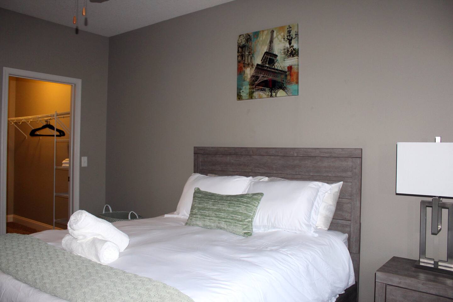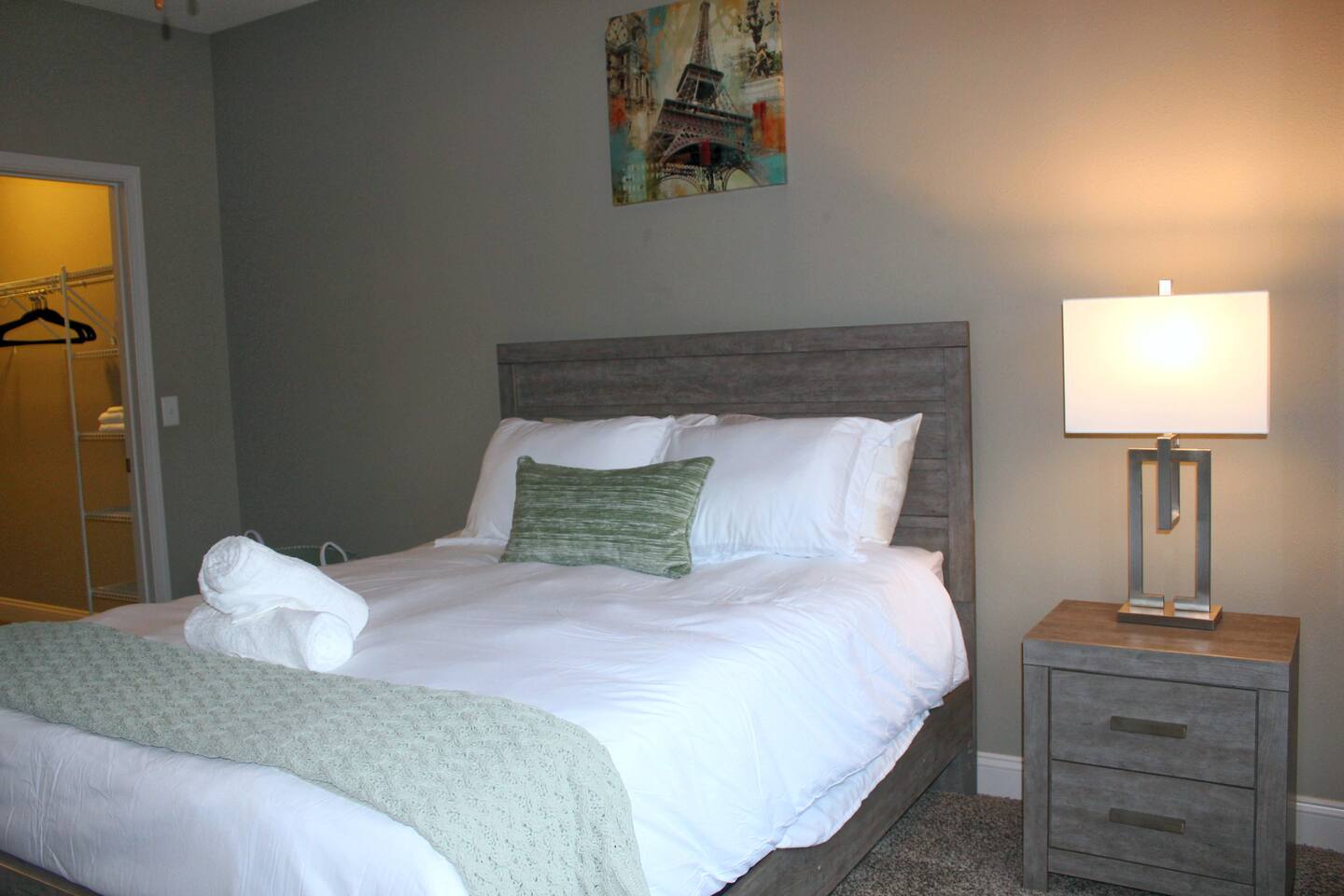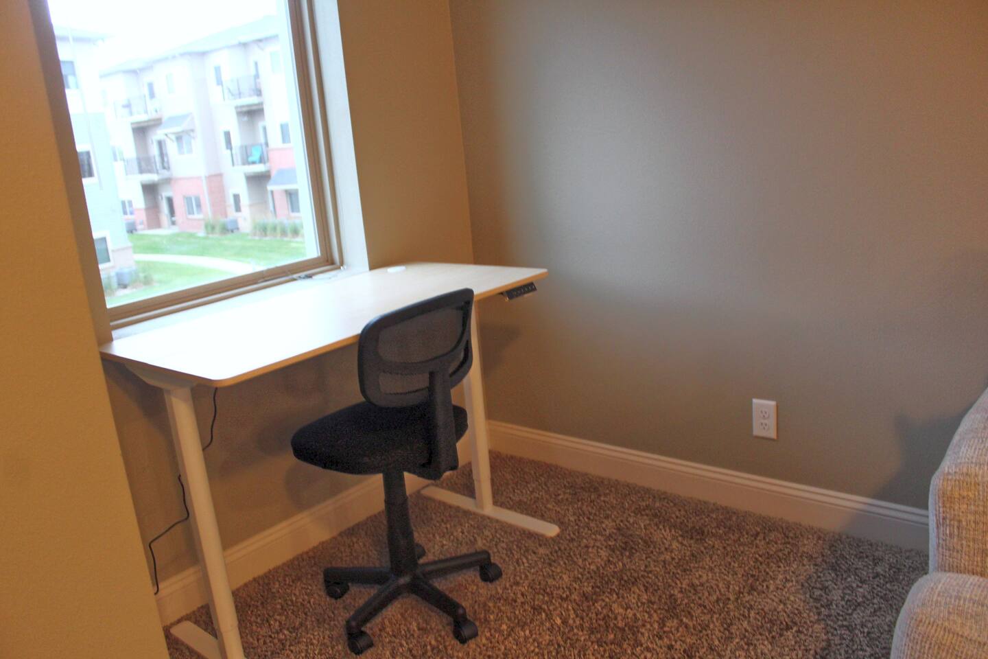 This 1BR apt in west Des Moines was just right for our 5-week stay. It was spotlessly clean & fresh. It was spacious with a very well-equipped kitchen. The bedroom had a dresser & nightstand. The queen bed was reasonably comfortable & there were plenty of linens. The walk-in closet was big enough for two people, lots of hanging space, shelving, and a big laundry hamper. The washer & dryer were stacked, full-sized units - plenty big enough to wash sheets and towels and full laundry loads. The bathroom was squeaky clean, had a tub (nice plus!) and plenty of storage along with a generous supply of towels. There was also a nice deck off the living room with a small table & 2 chairs. The apt came with a nice garage. It was surprisingly quiet most of the time, esp at night. 2 things I would suggest improving: TV service was streaming only, no local access at all. Basic cable would be an upgrade. Also, the couch in the LR was uncomfortable, too deep for sitting. Overall a fine experience.