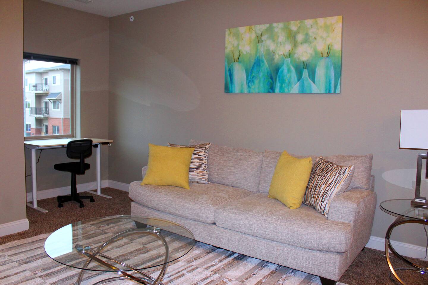 Our spacious one-bedroom, one-bathroom unit is perfect for anyone seeking comfort and convenience. Located in a secure building. Fully stocked kitchen: cook your favorite meals In-unit laundry: Enjoy the convenience of your own washer and dryer. Comfort and style: Beautiful, practical furnishings throughout the unit. Entertainment-ready: Relax in a spacious living area. Situated near Jordan Creek Mall and Des Moines University, you’ll have easy access to shopping, dining, and entertainment.