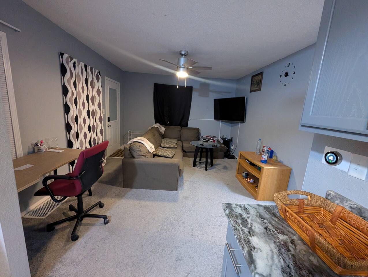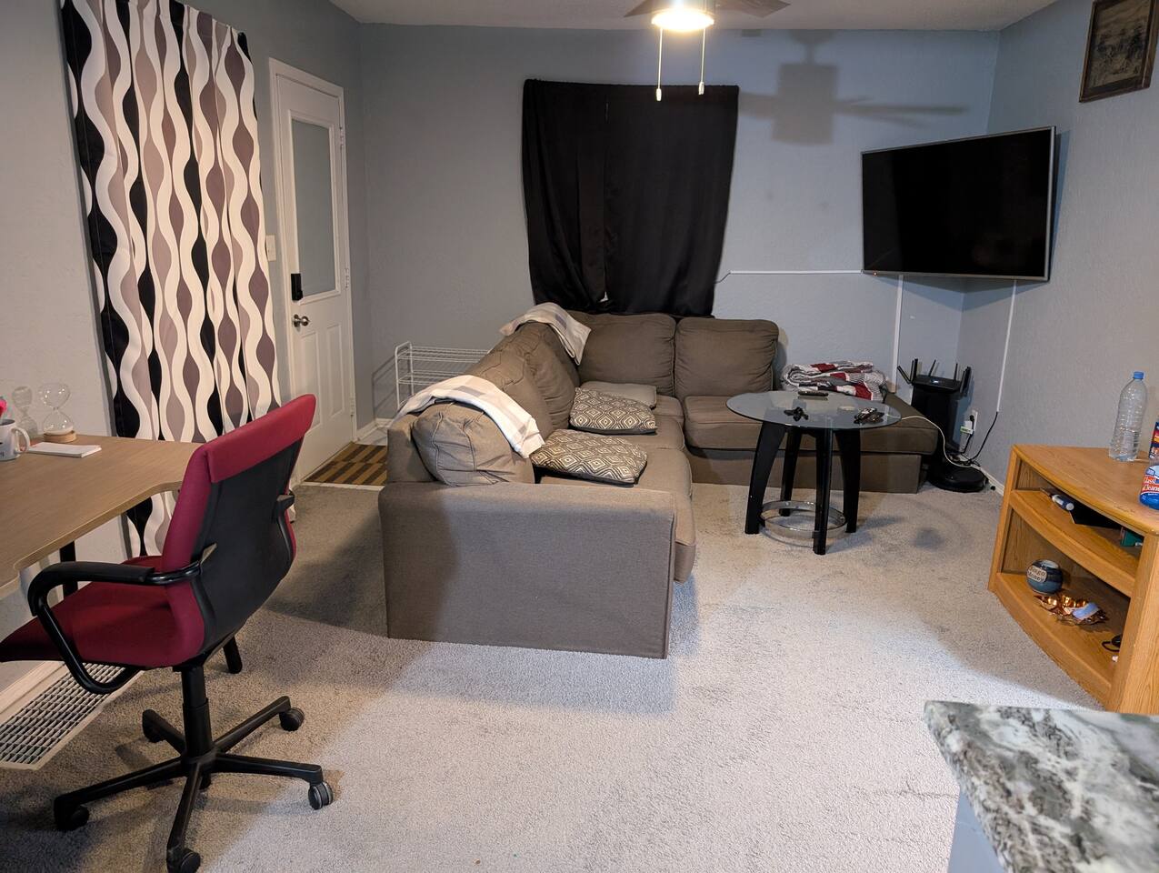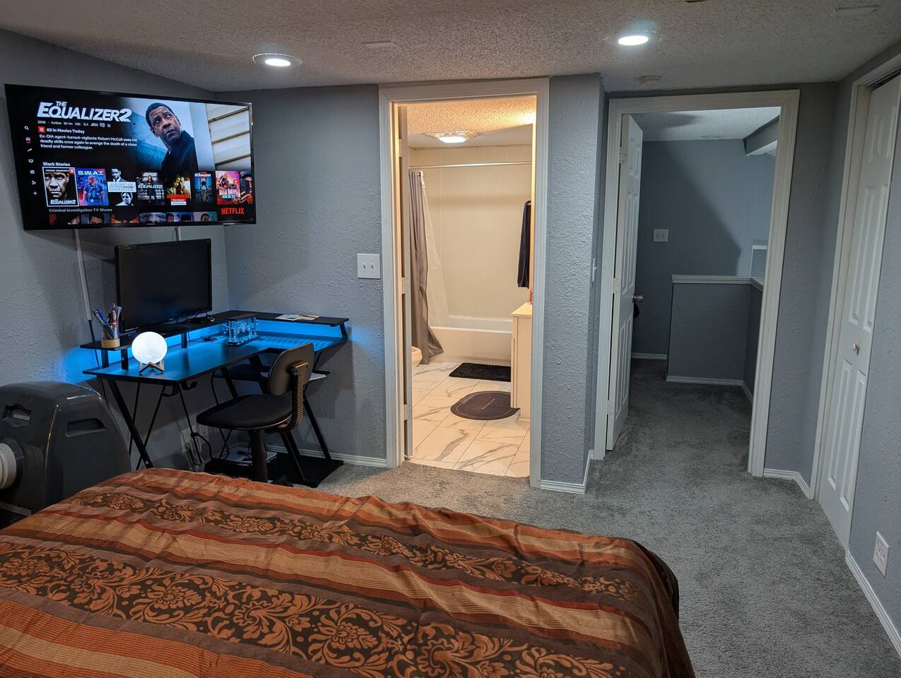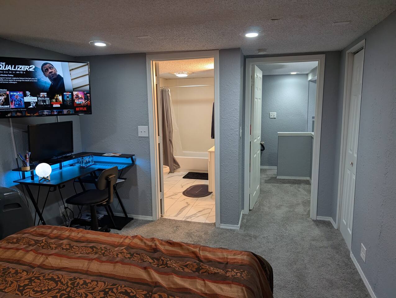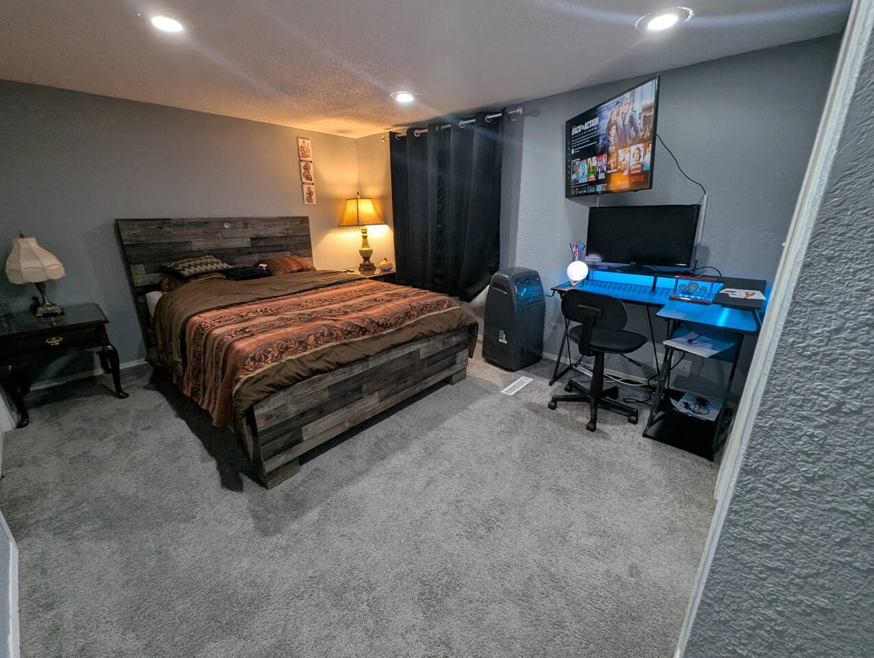 You will have access to all 3 bedrooms and 2 bathrooms. Plenty of parking space. ✅ Prime Location – Quick access to top attractions, local restaurants, QT convenience store, and more. ✅ Stay Connected – Fast fiber Wi-Fi makes remote work or streaming a breeze. ✅ Fully Equipped Kitchen – Cook like you're at home with all utensils and cookware included. ✅ Comfort & Convenience – Enjoy free on-site parking, in-unit washer/dryer, and cozy furnishings throughout. Whether you're here for the Fair, business, or a getaway, this comfortable and well-located home has everything you need for a stress-free stay.